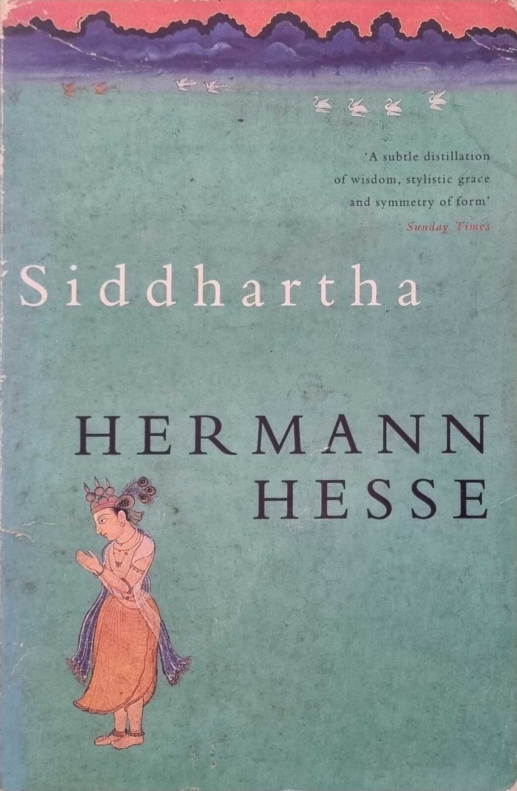 In the novel, "Siddhartha," a young man, leaves his family for a contemplative life, then, restless, discards it for one of the flesh. He conceives a son, but bored and sickened by lust and greed, moves on again. Near despair, Siddhartha comes to a river where he hears a unique sound. This sound signals the true beginning of his life -- the beginning of suffering, rejection, peace, and, finally, wisdom.
